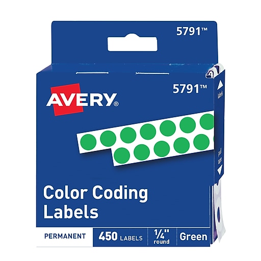 Avery 05052 removable self adhesive round paper color coding label green 1 2 dia 840 pack with fast and free shipping on select orders.